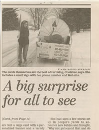 Because of the head-turning, traffic-stopping nature of "Card in the Yard", we've been very fortunate to have many newspaper and magazine articles written about us. Here are a few...