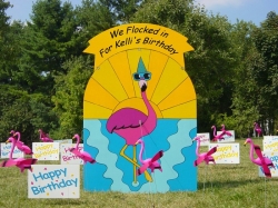 A LITTLE TACKY? That´s the idea!! Heads will turn with this neon screaming flamingo ´card´. Our most popular ´get even´ gag!! |